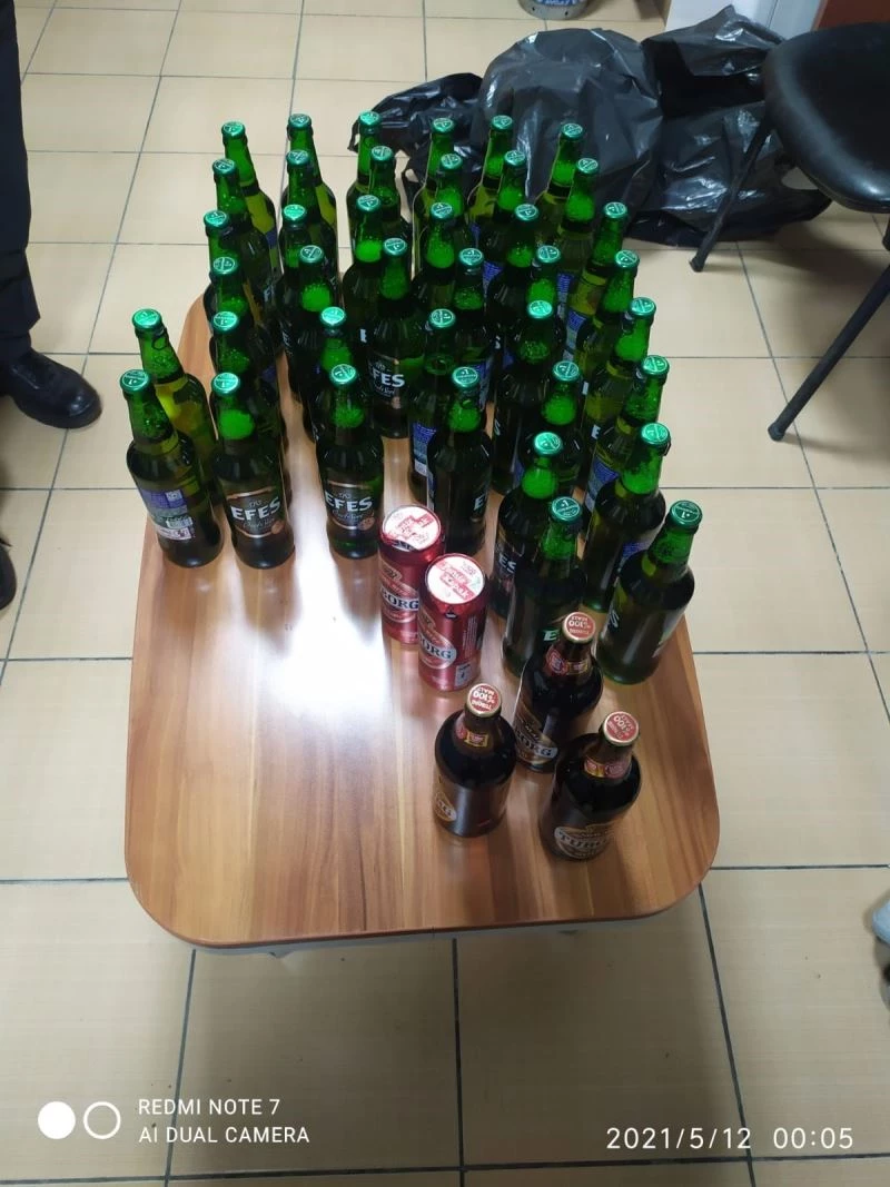 Araçta yapılan arama ve kontrollerde çok sayıda alkol ele geçirilirken, şüphelilere 17 bin lira idari para cezası uygulandı.