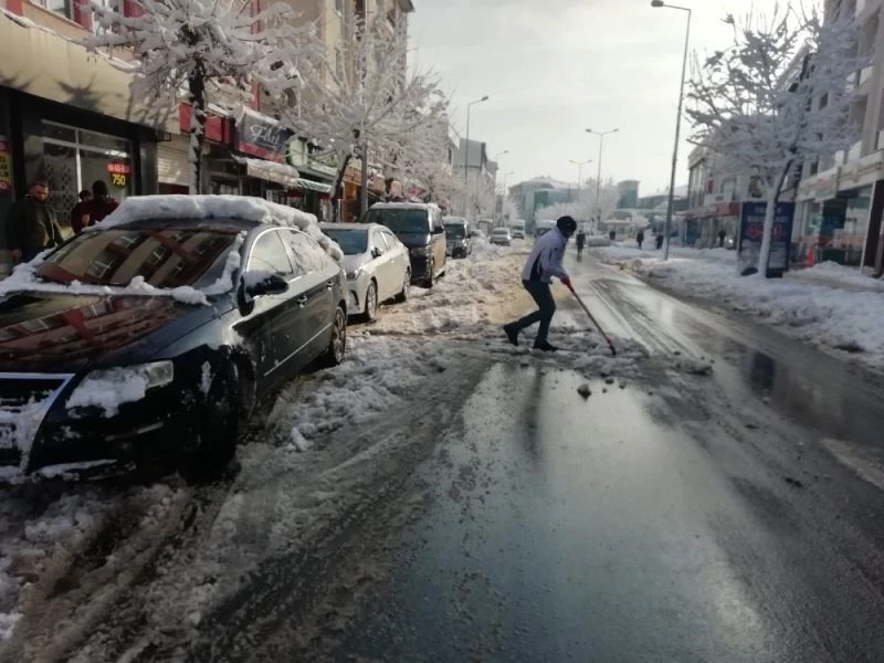 Hem kapılarının önlerini hem de belediye ekiplerine yardımcı olmak için çalışma yaptıklarını belirten esnaflar, “Kısıtlama nedeniyle kar işyerlerimizin önüne birikmişti. Bizde ilk iş gününe hem belediye ekiplerimize yardımcı olmak hem de kapımızın önünü temizlemek için kürekleri elimize aldık, karları temizledik” dediler.