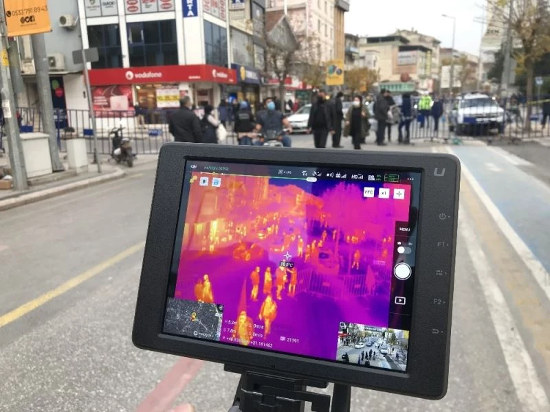 DÜZCE(İHA) – Düzce’de hafta sonu uygulanan sokağa çıkma kısıtlamasının ardından hafta içinde vatandaşların yoğunluk oluşturduğu kent merkezinde, Düzce İl Emniyet Müdürlüğüne bağlı İnsansız Hava Araçları Büro Amirliği ekipleri termal kameralı drone ile denetim gerçekleştirdi.