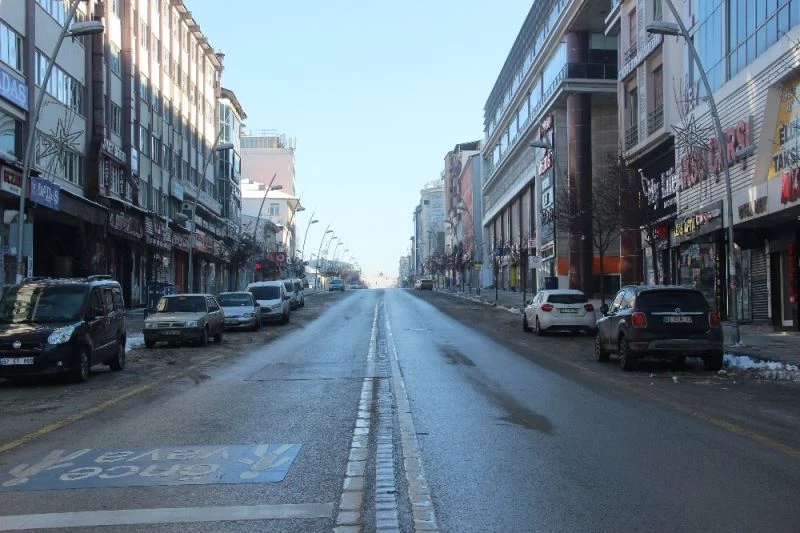 Erzurum’da hafta sonları uygulanan sokağa çıkma kısıtlamasının son gününde caddeler boş kaldı.