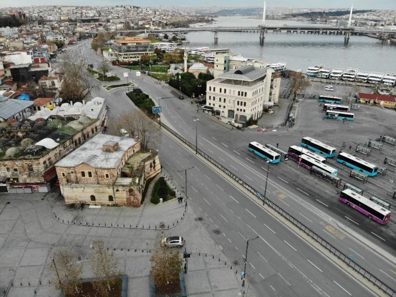 Kısıtlamanın üçüncü haftasında Eminönü Meydanı sessizliğe büründü