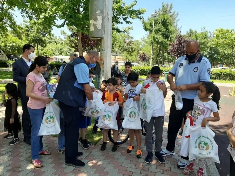Kısıtlamaya ara verilmesi ile dışarı çıkan çocuklara spor malzemesi hediyesi
