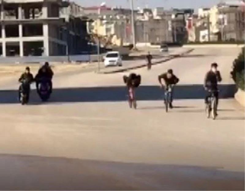 İçişleri Bakanlığı genelgesiyle hafta sonları Türkiye genelinde uygulanan sokağa çıkma kısıtlamasının ilk gününde Gaziantep’te kaydedilen görüntüler pes dedirtti. Sokağa çıkma kısıtlamasına rağmen bisikletlerine binen onlarca çocuk, Şahinbey ilçesi Yeşilvadi Bulvarı’ndaki tehlikeli yolculuklarıyla yürekleri ağza getirdi. Genelgeyle kapsam dışında tutulan vatandaşların araçlarıyla trafik yoğunluğu oluşturduğu bulvarda, kısıtlamaya rağmen bisikletleriyle yarış yapan çocuklar çevredekilerin de tepkisini çekti. Bulvar üzerinde yokuş aşağı bisiklet üzerinde uzanarak yolculuk yapan çocukların tehlikeli bir şekilde trafikte seyir etmesi tepki çekti. Vatandaşlar tarafından görüntülendiklerini fark eden çocuklar bir süre sonra bölgeden uzaklaştı.