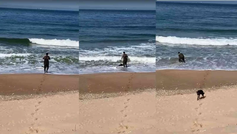 Bartın’da kıyıya vuran ve hareketsiz kalan yunus bir vatandaş tarafından yeniden denize döndürüldü.