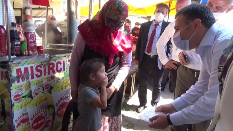 Kız çocuğu maske takmadığını fark edince eliyle ağzını kapattı, Vali Atay maske hediye etti