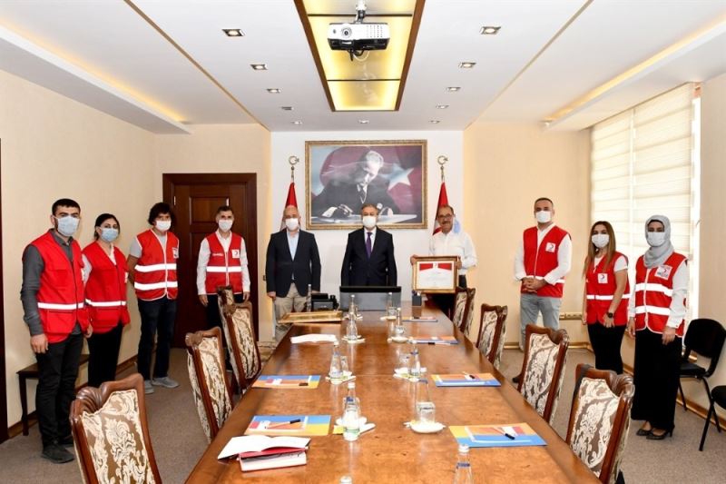 Mersin valisi Ali İhsan Su, Elazığ ve Malatya depremi, pandemi dönemi ve Ramazan ayı kapsamında Kızılay’a 250 bin TL üzeri ayni ve nakdi bağış yapan hayırseverlere ‘şükran belgesi’ verdi.
