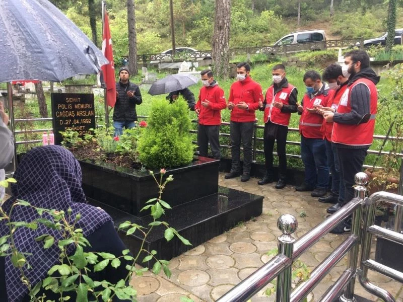 Türk Kızılayı Zonguldak Şubesi, Genç Kızılay ve Gönülü gençler, arife gününde Zonguldaklı şehit memuru Çağdaş Arslan’ı ziyaret ederek, şehitlikde Yasin-i şerif okuttu.