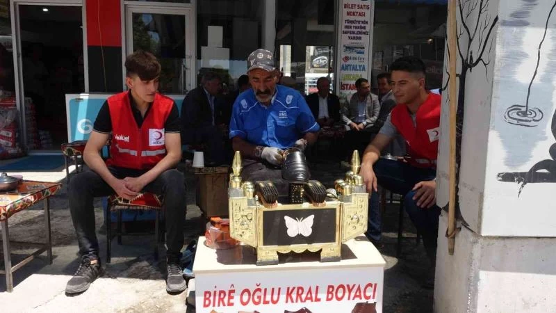 VAN – Van’ın Muradiye ilçesinde yıllardır ayakkabı boyacılığı yapan Yusuf Kaplan’a Kızılay ekibi tarafından ayakkabı boya sandığı hediye edildi.