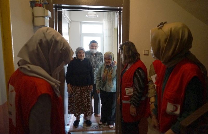Kızılay ekipleri, evinden çıkamayan engelli vatandaşı ziyaret ederek sevindirdi
