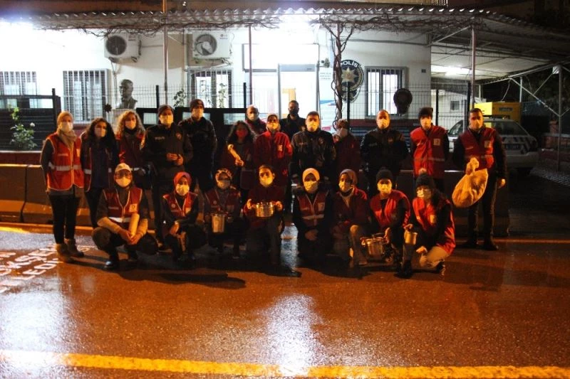 Türk Kızılay Aydın İl Başkanlığı gönüllüleri evlerinde yaptıkları tarhana çorbalarını gece saatlerinde soğuk ve yağmurlu havada görev yapan polis memurlarına ikram etti.