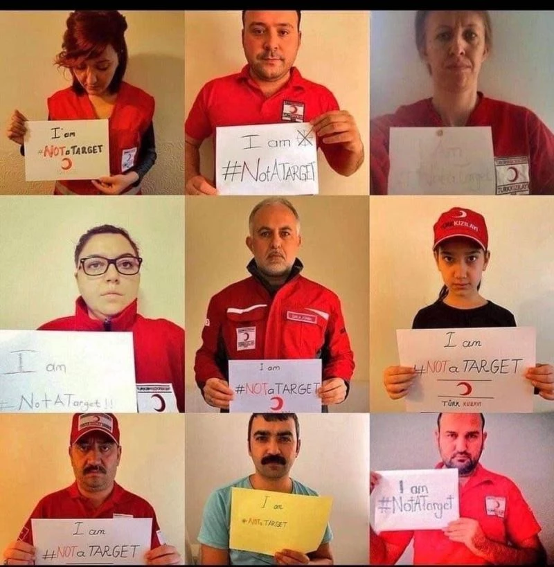 Türk Silahlı Kuvvetleri’nin Fırat Kalkanı harekatı ile teröristlerden temizlediği El-Bab bölgesinde sürdürülen Kızılay yardım faaliyetlerinde görevli araca silahlı saldırı düzenlendi. Saldırıda Düzceli Mehmet Arif Kıdıman şehit olurken, 2 personelde yaralanmıştı. Düzceli Mehmet Arif Kıdıman’ın naaşı dün düzenlenen törenle babası merhum gazetesi Mehmet Kıdıman’ın yanına defin edildi. İnsani Yardım derneği olarak bir çok bölgede yardım faaliyetleri yapan Kızılay sosyal medya üzerinden Dünya’ya seslenerek ’ben hedef değilim’ çağrısında bulundu. Kızılay Genel Başkanı Kerem Kınık’ın da katıldığı çağrıda, Kızılay elbiseleri giyen personeller kağıtlara ’I am #NotATarget’ yazarak sosyal medyada paylaştı. Binlerce vatandaş çağrının duyurulması için kampanyaya destek verdi.