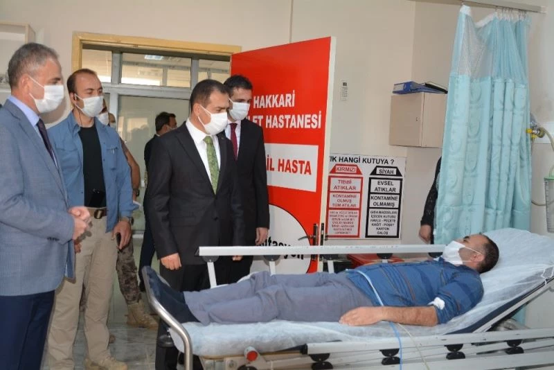 Hakkari Valisi ve Belediye Başkan Vekili İdris Akbıyık, meydana gelen trafik kazasında yaralanan Kızılay Derneği Hakkari Şube Başkanı Recep Bozkurt ve diğer yaralıları hastanede ziyaret etti.