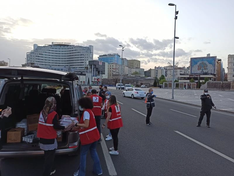 Türk Kızılay Kayseri Şube gönüllüleri, sokağa çıkma kısıtlaması nedeni ile şehrin farklı bölgelerinde uygulamada görev yapan polislere iftar vaktinde 450 adet yemek ikram etti.