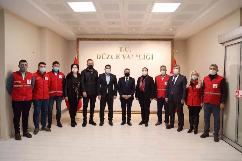 Kızılay Düzce Şubesi yönetimi Kızılay Haftası münasebetiyle, Vali Cevdet Atay’ı makamında ziyaret etti. Ziyarette Kızılay’ın yaptığı çalışmalar konuşuldu.