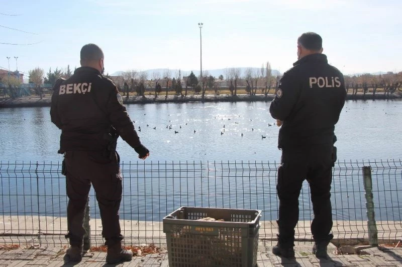 Nevşehir’in Avanos ilçesinden geçmekten olan Kızılırmak nehrinde bulunan kaz ve ördekleri Avanos İlçe Emniyet Müdürlüğünde görevli polis memurları besledi.