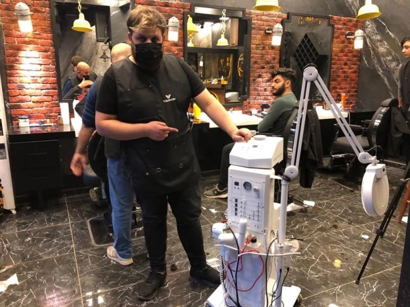 Mardin’in Kızıltepe ilçesinde yaşayan ödüllü kuaför Yusuf Aydın, yeni mekanında birçok yeniliği de beraberinde getirdi. Aydın, salonunda saç, sakal tıraşından sonra buhar makinesinde müşterilerinin yüzlerindeki akneleri aldırıyorlar, şok cihazıyla yüzlerindeki kırışıklıkları gideriyor. Yusuf Aydın, artık erkelerin, kadınlardan daha çok cilt bakımı yaptırdığını kaydetti. Aydın, "Birkaç ay önce salonumuzu yeniledik. Burada saç bakımı, cilt bakımı, pedikür, manikür yapıyoruz. Son zamanlarda erkekler kadınlardan daha çok cilt bakımına özen gösteriyor. Burada yaptığımız cilt bakımında önce buhar veriyoruz. Ondan sonra akneleri alıyoruz. Perma ve saç boyası yapıyoruz” dedi.