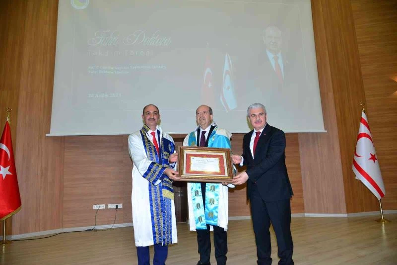 Kuzey Kıbrıs Türk Cumhuriyeti (KKTC) Cumhurbaşkanı Ersin Tatar’a Kırşehir Ahi Evran Üniversitesi senatosu tarafından fahri doktora unvanı verildi.