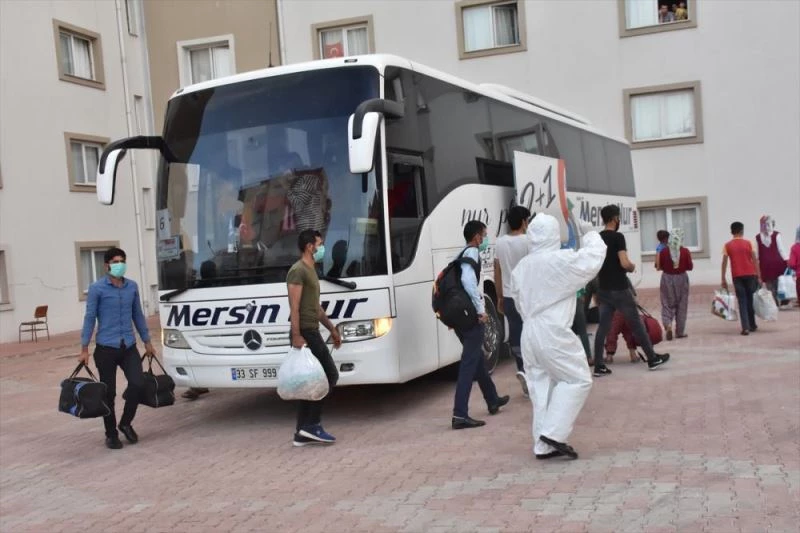 Kentte Safvan Bin Muattal Yurdu'na getirilen tarim isçileri, burada 14 gün gözlem altinda tutulacak.