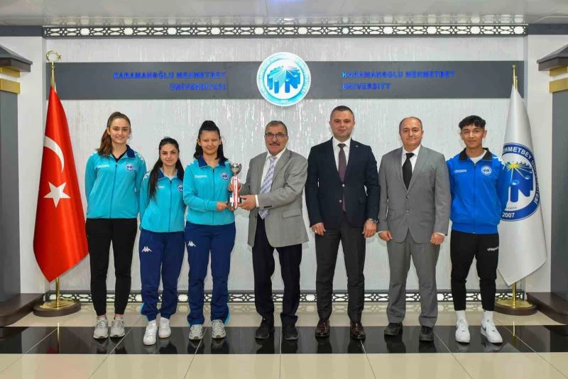 Dört gün süren müsabakaların ardından kupa ile üniversiteye dönen sporcular, Spor Bilimleri Fakültesi Dekanı Prof. Dr. Sefa Lök ve Doç. Dr. Erhan Devrilmez ile birlikte KMÜ Rektörü Prof. Dr. Mehmet Gavgalı’yı ziyaret etti. Rektör Gavgalı, Spor Bilimleri Fakültesi öğrencilerini ferdi yarışmalarda ve takım olarak elde ettikleri başarılardan dolayı tebrik ederek başarılarının devamını diledi.