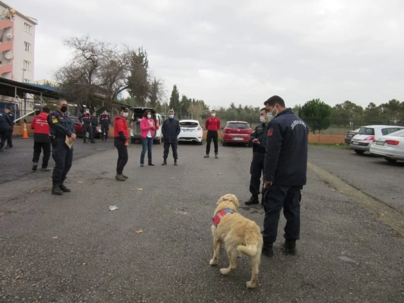 Ayrıca, olası bir deprem neticesinde enkaz altındaki vatandaşların tahliyesinde önemli rol oynayacak olan İl Jandarma Komutanlığında görevli Arama Kurtarma Köpeği Kor’un da katılımı ile uygulamalı eğitim yapıldı.