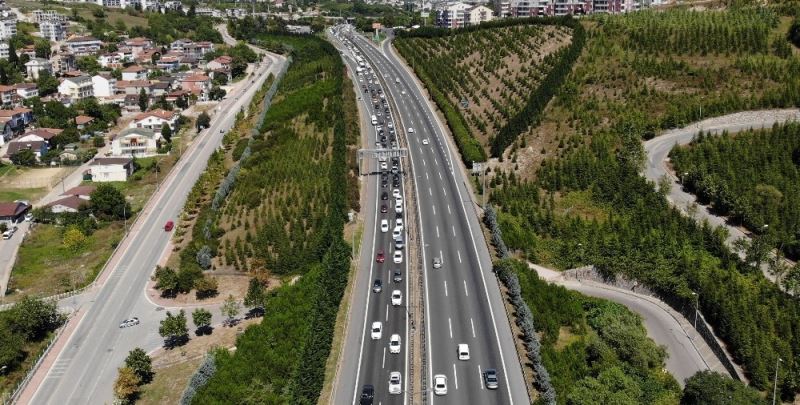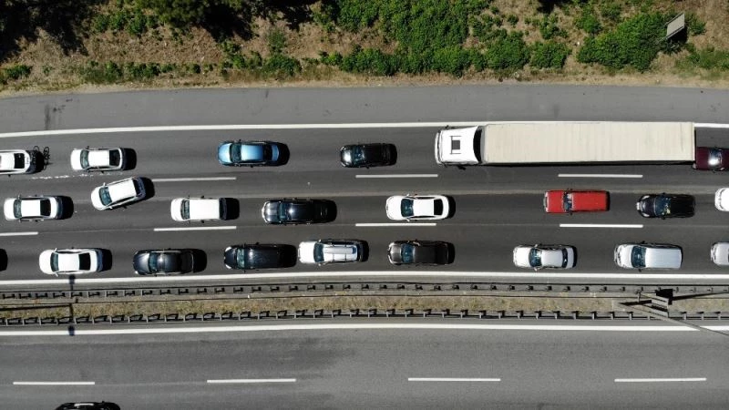 Trafiğin durma noktasına geldiği TEM Otoyolu İzmit kesimi ise havadan görüntülendi. Görüntülerde tatilcileri taşıyan araçların sıkışan trafikte ilerlemekte güçlük çektikleri görülüyor.