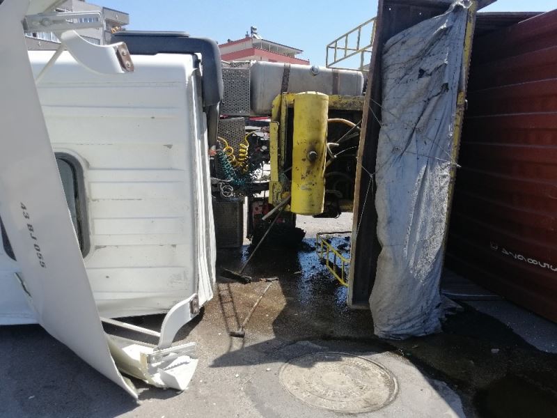 Kocaeli’de bor madeni yüklü tırın devrilme anı kamerada