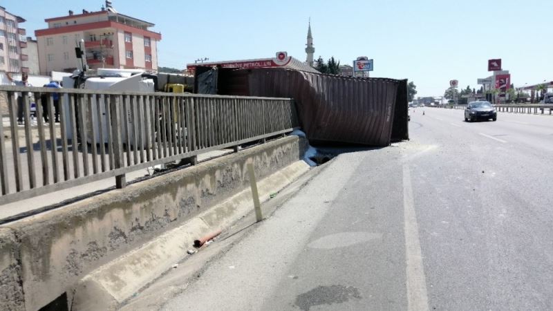 Kaza, Kocaeli’nin Körfez ilçesi D100 Karayolu Atalar Mahallesi mevkisinde meydana geldi. Edinilen bilgilere göre, Ahmet Güreşçi idaresindeki 43 PJ 055 plakalı bor madeni yüklü tır, hatalı sollama yapan otomobile çarpmak istemeyen sürücüsünün manevra yapması sonucunda yol kenarında bulunan duvara çarparak devrildi. Tır sürücüsü Ahmet Güreşçi, kazayı yaralanmadan atlattı. Kazayı gören çevredeki vatandaşlar, hemen Güreşçi’nin yardımına koştu.