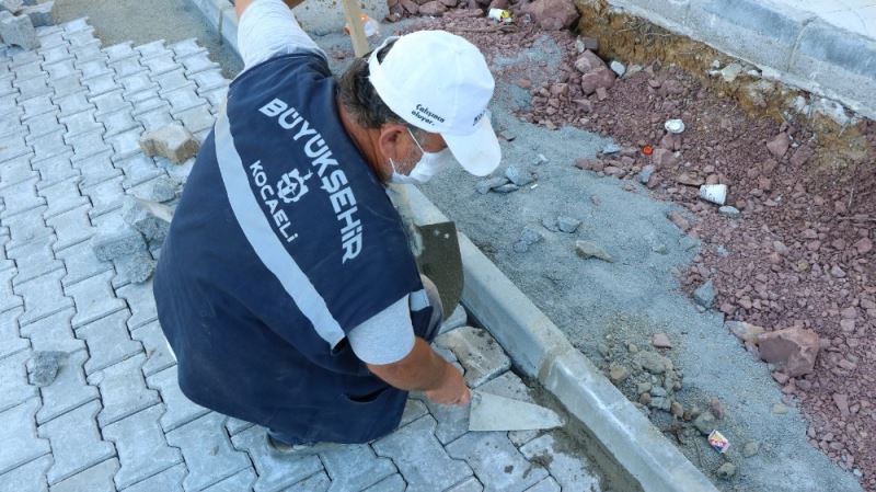Şehrin farklı noktalarında bozulan zeminlerin tamiratı, Kocaeli Büyükşehir Belediyesi ekipleri tarafından düzenli olarak gerçekleştiriliyor.