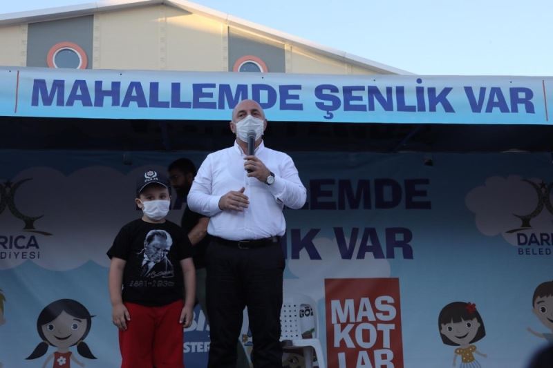 Darıca’da korona virüs salgınının yayılmasını önlemek amacıyla pandemi sürecinde tiyatro ve sinema salonlarının kapalı olması nedeniyle evlerinde sıkılan çocuklar şenlikle buluştu. “Mahallemde Şenlik Var” projesi kapsamında çocuk tiyatrolarını mahallelere taşıyan Darıca Belediyesi ilk tiyatro gösterisini Kazım Karabekir Mahallesi’nde gerçekleştirdi. Korona virüs tedbirleri kapsamında sosyal aktivitelerden uzak kalan çocuklar Karagöz-Hacivat ve çocuk tiyatrosu gösterilerini izlerken eğlenceli anlar yaşadı.