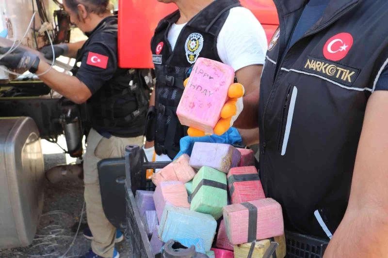 Tır, Bölge Trafik Müdürlüğü’ne çekildikten sonra uyuşturucu maddeler tek tek çıkarıldı. Paketlerin bazılarının üzerinde "happy birthday" yazdığı görüldü.