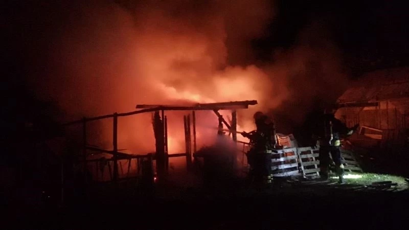 Kocaeli’de elektrik sobasından çıkan yangında baraka alevlere teslim oldu