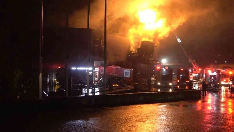 Kocaeli’nin Kartepe ilçesinde bulunan geri dönüşüm fabrikasında yangın çıktı, ekiplerin yangını söndürme çalışmaları devam ediyor.