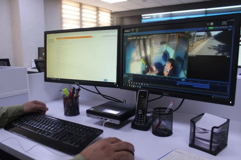 Kocaeli’de halk otobüslerinde yerleştirilen kameraları 24 saat kesintisiz olarak izlenildiği merkezde, otobüslerde maske ve sosyal mesafeyi ihlal eden yolcu ve sürücüler tespit edilerek haklarında ceza işlemi uygulanıyor.