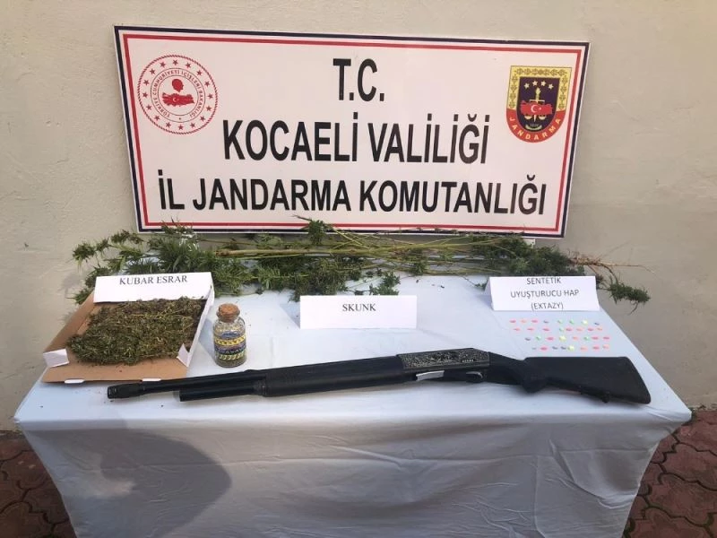 Şüphelilerin evinde ve iş yerinde yapılan aramalarda 31 adet extacy türü sentetik uyuşturucu hap, 385 gram esrar, 5 kök skunk ve 1 adet ruhsatsız av tüfeği ele geçirildi. Şüphelilerin jandarma komutanlığındaki işlemlerinin ardından adliyeye sevk edilecekleri öğrenildi.
