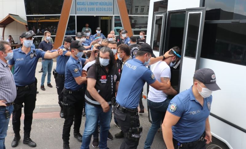 Emniyette işlemleri tamamlanan 10 şüpheli, polis ekiplerinin geniş güvenlik önlemleri arasında Kocaeli Adliyesine sevk edildi.