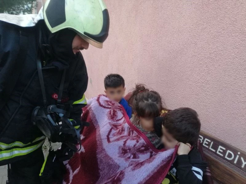 Kocaeli’nin Derince ilçesinde evde çıkan yangında 3 çocuk ve anneleri büyük korku yaşadı. Anne çocuklarını alıp dışarı kaçarken, çocuklar soğuktan üşüyünce komşuların verdiği battaniyeye sarıldı.