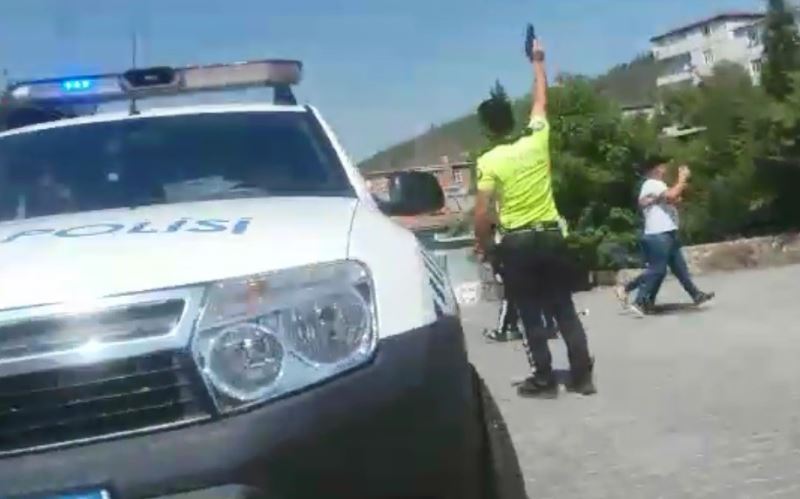 Öte yandan, kavga anı ise olay yerinde bir vatandaş tarafından cep telefonu kamerası ile görüntülendi. Görüntülerde uçan tekmelerle birbirine saldıran şahısları ayırmak için polis ekiplerinin havaya ateş açtığı görülüyor.