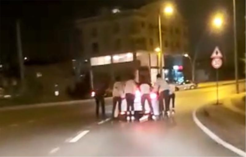 Başka bir araçtaki vatandaşlar tarafından cep telefonu kamerası ile çekilen görüntülerde, görüntüleri çeken vatandaşlar, aracın arkasına tutunarak yolculuk yapan patenli gençleri şaşkınlık içinde izliyor. Görüntüleri çeken vatandaş video kaydında, “Allah Allah. Şuna bak arkadaş ya. Sonra kaza oluyor, sonra ölüm oluyor. Böyle bir şey görülmedi arkadaşlar. 6 kişi arabanın arkasında gidiyor. Evet arkadaşlar görüyorsunuz. Böyle bir şey yok arkadaşım” ifadelerini kullandı.