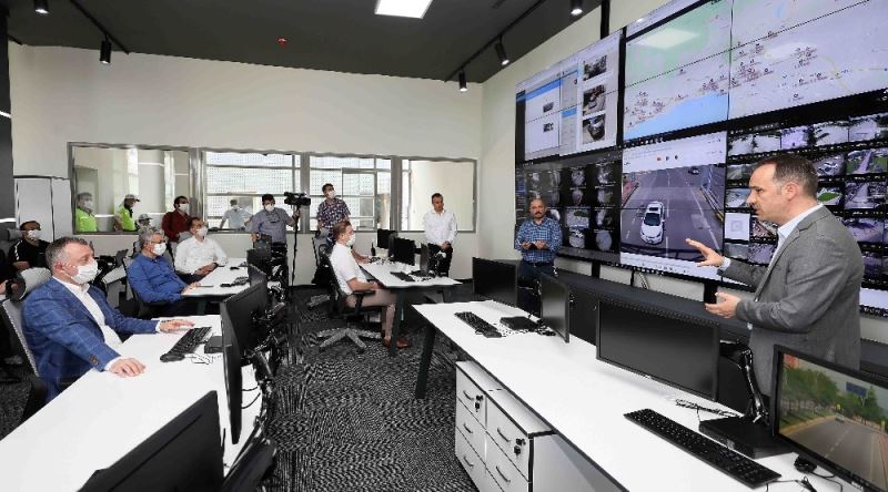 D100 ve D130 üzerinde kurulan sensörler vasıtasıyla trafik yoğunluğu geçen araç sayıları ve cinsleri ile trafik yönetim birimlerine veriler sağlayacak olmasının yanı sıra yoğunluğa göre sürücülere alternatif güzergahlar sunacak olmasına değinen Başkan Büyükakın, “Akıllı Şehirler dediğimizde ayrılmaz bir bileşen de akıllı ulaşım sistemleridir. Bu o akıllı ulaşım sisteminin kentimizde atılmış ilk adımıdır. Bu yolla Büyükşehir Zabıta ve Ulaşım dairelerimiz ile Emniyet Müdürlüğümüz burada ortaklaşa çalışma imkanı bulacaklar. Özellikle Emniyet Müdürlüğümüzün elinin güçlenmesi ve trafik tedbirlerinin daha güçlü hale gelmesi açısından da çok önemli bir altyapıya sahiptir bu merkezimiz” şeklinde konuştu.