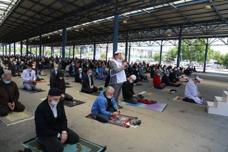 Kocaeli’de cuma namazı için belirlenen alanlara akın eden vatandaşlar sosyal mesafe kurallarına dikkat ederek namaz kıldı.