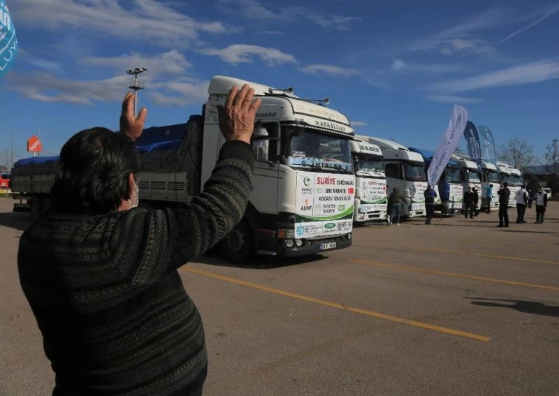 Kocaeli’den Suriye’ye 10 tır dolusu yardım malzemesi dualarla gönderildi