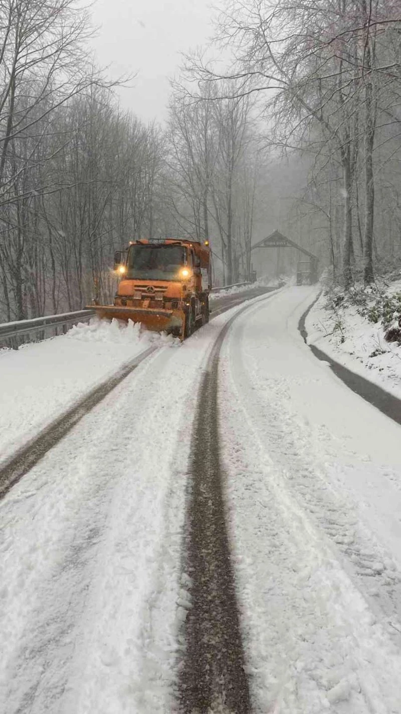 Kocaeli Büyükşehir Belediyesi karla mücadele ekipleri, Kartepe’de başlayan kar yağışında yolların kapanmaması için çalışmalarını sürdürüyor.