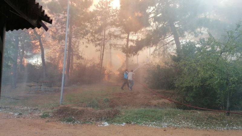 Havadan yangın söndürme helikopteri ile karadan da çok sayıda söndürme ekibi ile yangın kontrol altına alınmaya çalışılıyor.