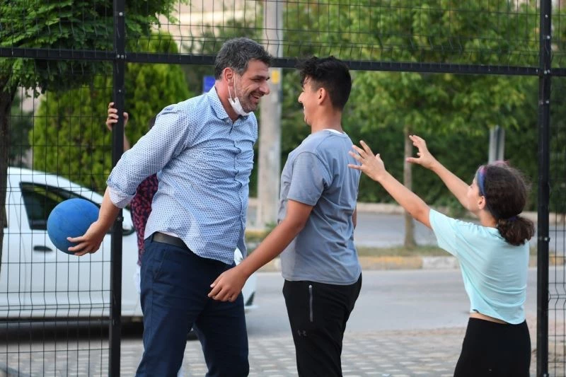 Emeklevler Mahallesi’nde gençlerle bir araya gelen Kartepe Belediye Başkanı Mustafa Kocaman, onlarla beraber basketbol oynadı. Kocaman, oyundan sonra gençlere dondurma ikramında bulundu.