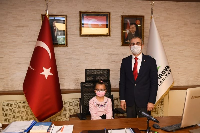 23 Nisan Ulusal Egemenlik ve Çocuk Bayramı dolayısıyla Başkan Çiftçi’nin koltuğuna oturan Özyürek, Çayırova ile ilgili düşüncelerini açıkladı. Özyürek, çocukların oyun oynayacağı park ile ders çalışabileceği yerlerin artırılmasını istedi. Başkan Yardımcısı Kenan Tuzcu’yu telefonla arayan Özyürek, Kitap Kahve projesinin hızlandırılarak bir an önce tamamlanmasını istedi. Başkan Bünyamin Çiftçi, 23 Nisan Ulusal Egemenlik ve Çocuk Bayramı’nı tebrik edip başarılar dilediği Duygu Melek Özyürek’e hediye takdim etti.