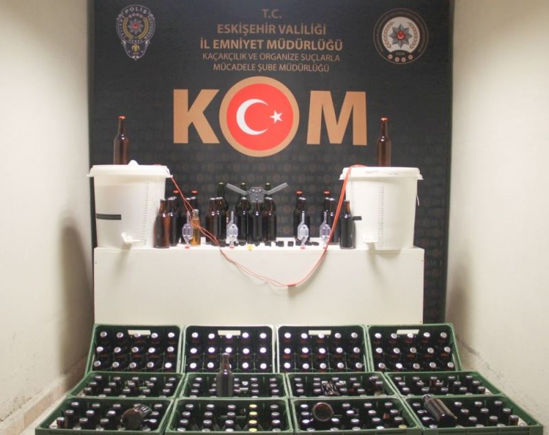 Edinilen bilgiye göre; Eskişehir Emniyet Müdürlüğü Kaçakçılık ve Organize Suçlarla Mücadele Şube Müdürlüğü (KOM) ekiplerince, devletin vergi kaybının önlenmesi, haksız kazancın engellenmesi ve halk sağlığının korunması amacı ile yapılan çalışmalar devam ediyor. Son olarak, yapılan araştırmalarda kaçak alkol ürünlerini üreterek piyasaya sürmeye çalışan şahıslara yönelik operasyon başlatıldı. Operasyonda, kentte bulunan bir ikamete baskın yapan polis ekipleri, yaptıkları aramada, 280 şişe, ve şişelenmeye hazır 40 litre alkol olmak üzere toplam 180 litre kaçak alkol ve 2 adet alkol yapımında kullanılan düzenek ile bir adet alkol şişesi kapağı kapatmakta kullanılan aparat ele geçirildi.