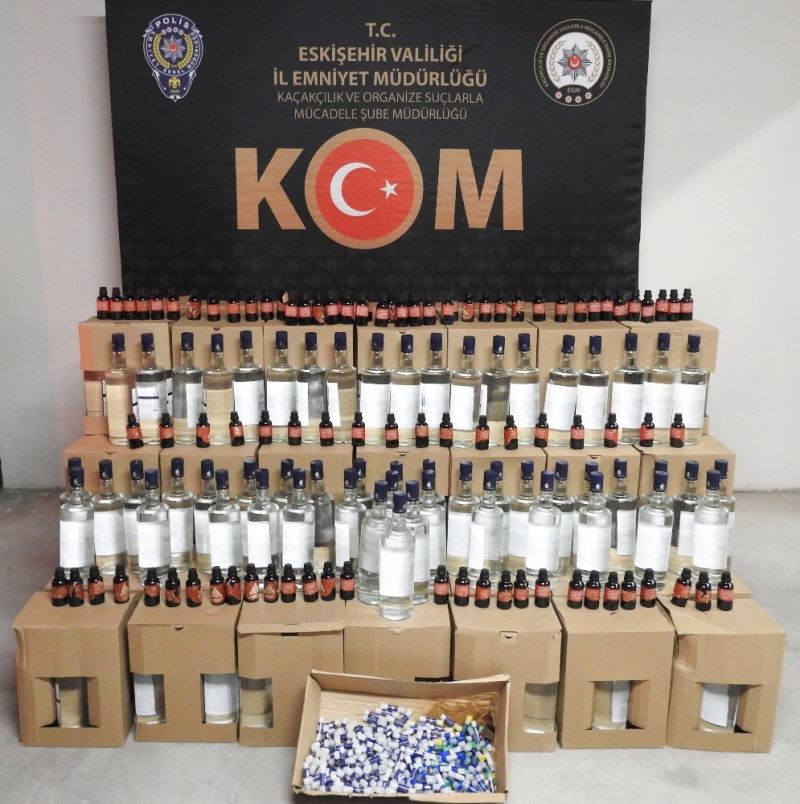 Eskişehir’de KOM ekipleri, sahte içki üretip piyasaya sürmeye çalışan şüpheliyi operasyonla yakaladı. Şüpheliye ait araçta yapılan aramalarda yüzlerce şişe etil alkol ve alkol yapımında kullanılan aroma kiti ele geçirildi.