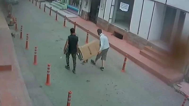 Eskişehir’de kombi çalan hırsızların kaçış anları, bir iş yerinin güvenlik kameralarına saniye saniye yansıdı.