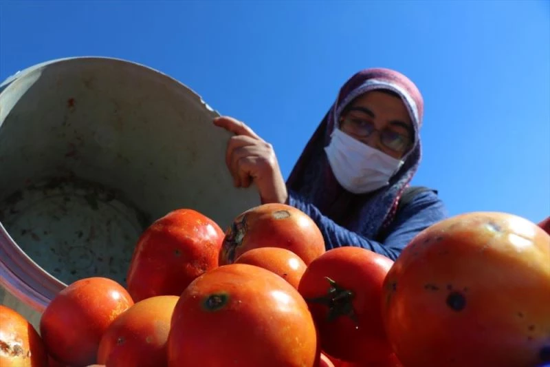 Yaz döneminde ürettikleri biber ve domateslerin bir kismini satisa sunan kadinlar, bir kismiyla da ev yapimi salça hazirladi.