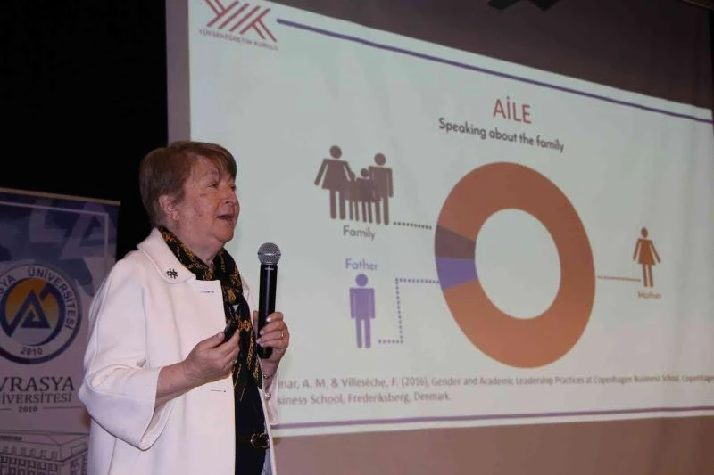 Avrasya Üniversitesi’nde “Türk Akademisi ve Kadın” konulu konferans düzenledi. Üniversitenin Ömer Yıldız Yerleşkesi Konferans Salonunda gerçekleşen konferansta konuşan Prof. Dr. Sezer Şener Komsuoğlu, Türkiye’nin yükseköğretimde kız öğrenci sayısı konusunda Avrupa’nın zirvesinde olduğunu vurguladı. Komsuoğlu “ 2021 yılı oranlarına baktığımızda Türk Yükseköğretiminde öğrenci sayısının yüzde 49 ‘unu kız öğrenciler oluşturuyor. Toplam öğrenci sayımız ise 8 milyon 240 bin civarında. Bunun dışında 106 bin doktora , 343 bin civarında yüksek lisans öğrencimiz var. Bu öğrencilerimiz arasında kız öğrenci oranımız ise yüzde 46’dır. Bu tabloya baktığımızda alkışlanacak konumdayız. Bunun yanı sıra ülkemizde 990 meslek yüksekokulu bulunmaktadır. Bu meslek yüksekokullarımızda 7793 program var. Toplam öğrenci sayımız 3 milyondan fazla ve kız öğrenci oranımız yüzde 52. Bu gerçekten çok önemli bir oran” dedi.